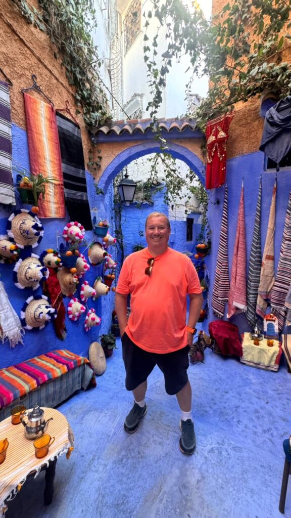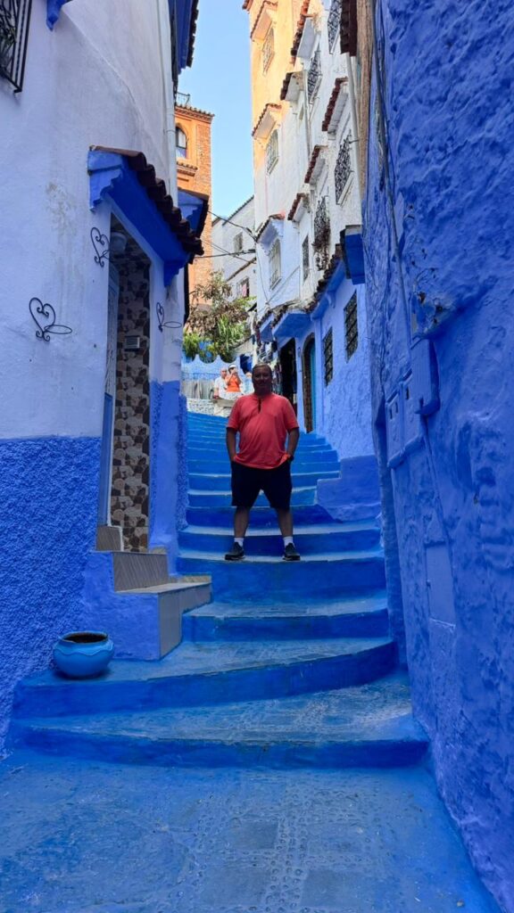 No porto, encontramos nosso guia local, que nos acompanharia durante toda a viagem de 11 dias pelo Marrocos. Após as boas-vindas e uma breve explicação sobre o roteiro, seguimos rumo a uma das cidades mais encantadoras do país: Chefchaouen, a famosa “Cidade Azul”.