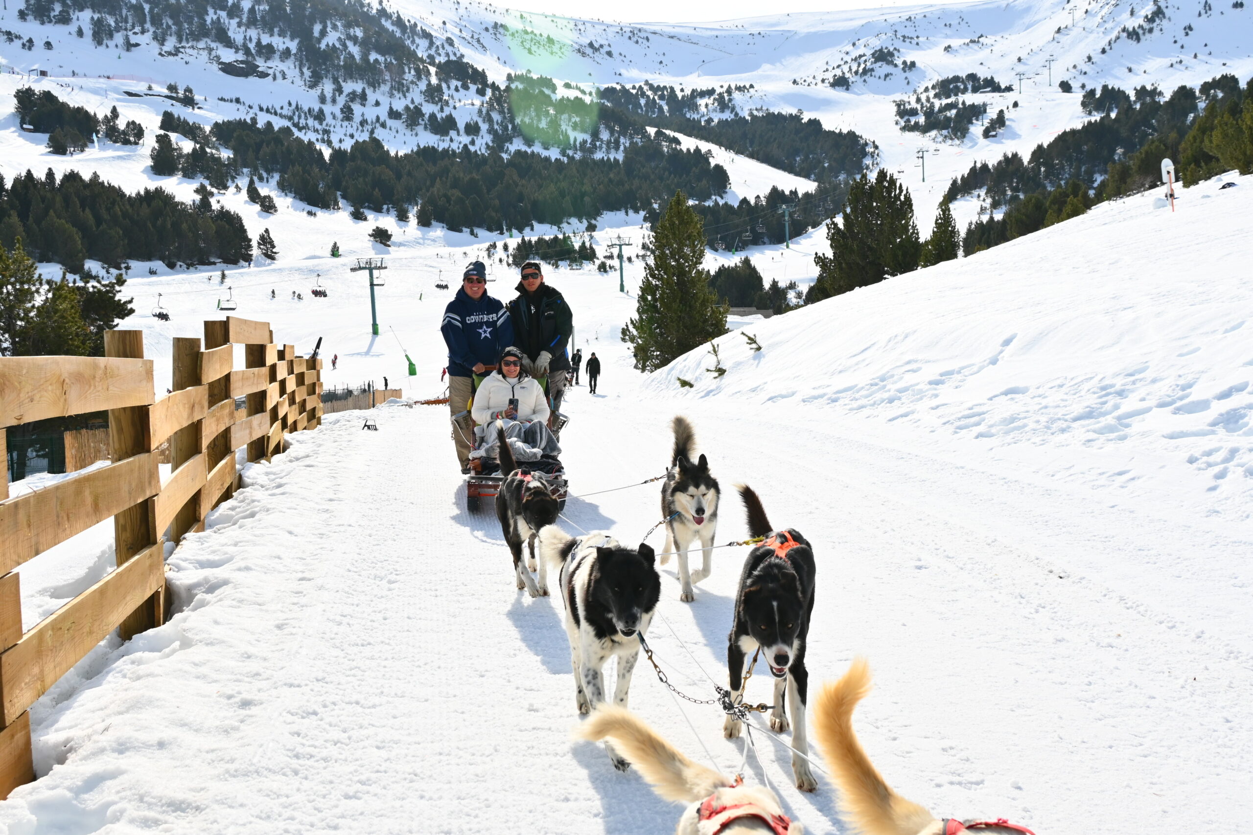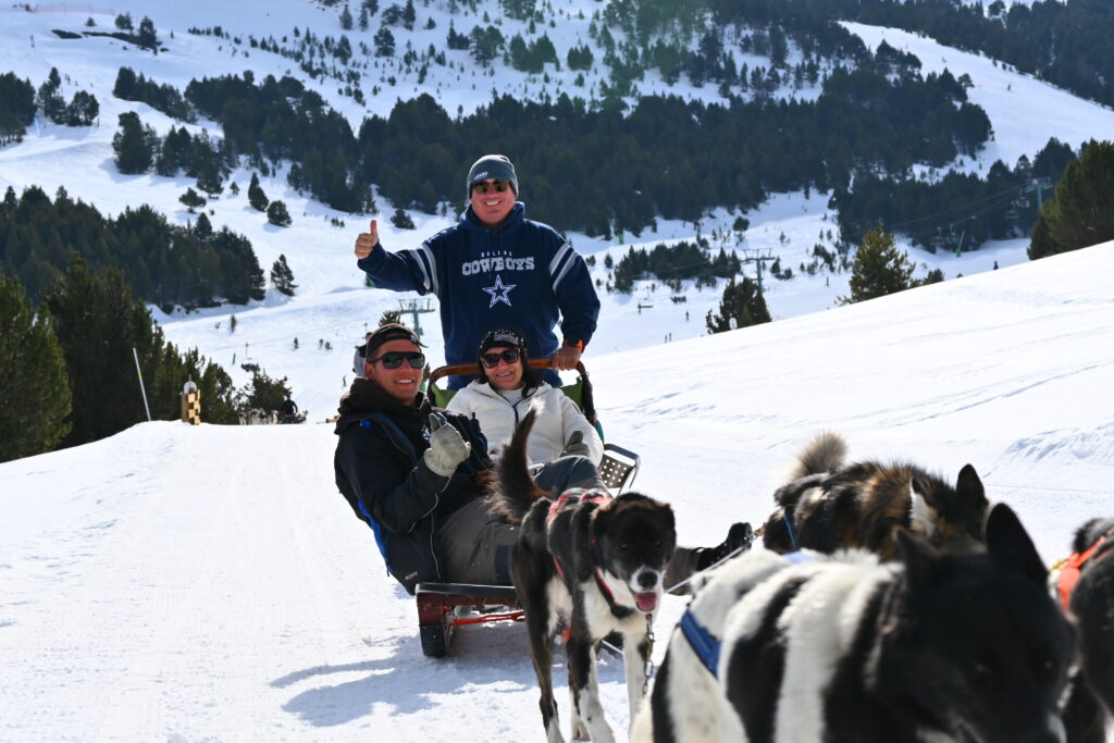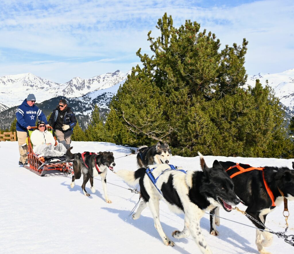 Foi um dos momentos mais especiais de toda a viagem. Fizemos o passeio na região de El Tarter, cercados por paisagens totalmente brancas, daquelas que parecem cena de filme. O silêncio das montanhas, o som do trenó deslizando na neve e a conexão com os cães tornam a experiência emocionante e inesquecível. É lindo, diferente e muito marcante.