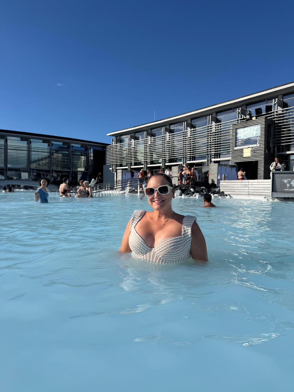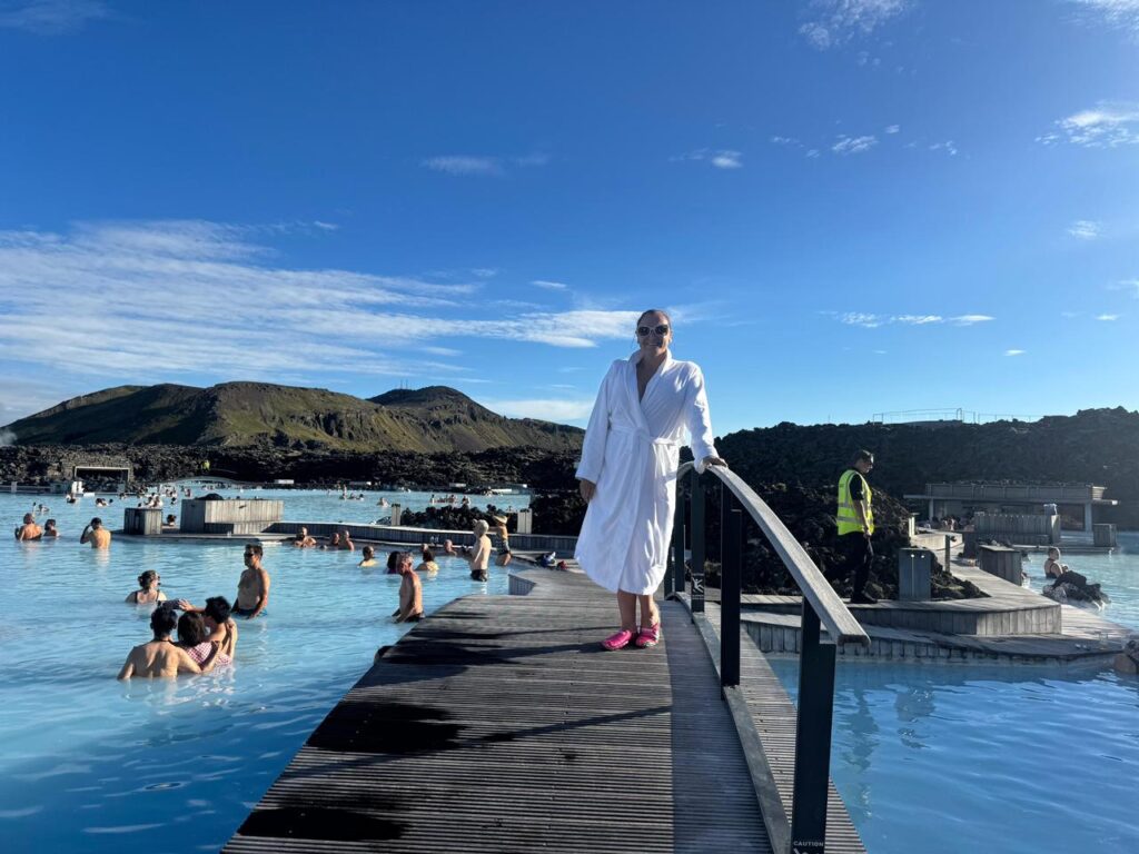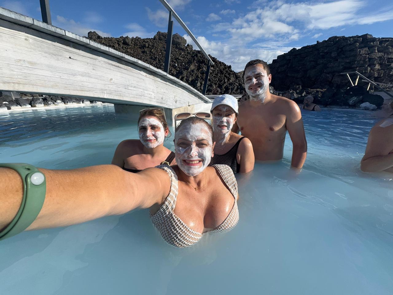 Encerramos o dia na Blue Lagoon, vivenciando uma das experiências mais memoráveis da viagem. O contraste entre o ar frio e a água quente, envolta por névoa e cercada por rochas negras, cria uma atmosfera etérea. Passamos a tarde relaxando nas piscinas, fazendo tratamentos faciais com sílica e brindando com taças de champanhe dentro da água um momento de puro luxo e desconexão. Para quem deseja uma experiência ainda mais exclusiva, o sofisticado The Retreat Hotel, integrado à lagoa, oferece hospedagem e serviços de alto nível. Foi o encerramento perfeito de um dia repleto de paisagens surreais e emoções inesquecíveis.