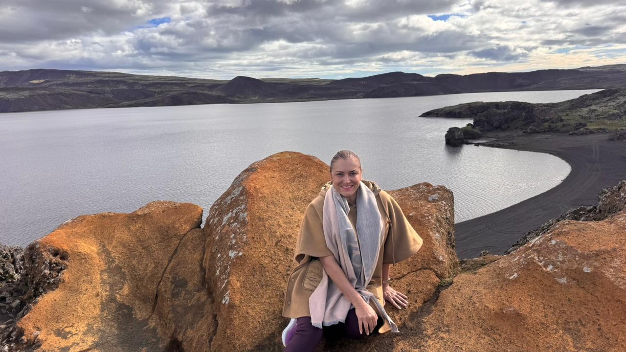 Seguimos então pela região de Reykjanesfólkvangur, uma das áreas mais fascinantes do sudoeste islandês. O cenário é de tirar o fôlego: campos de lava cobertos de musgo, montanhas avermelhadas e lagos profundos compõem uma paisagem quase surreal. Fizemos várias paradas para apreciar locais como o lago Kleifarvatn, o campo geotérmico de Seltún com suas fumarolas e piscinas de lama borbulhante e mirantes que revelam vistas de aparência lunar. A cada curva da estrada, uma nova surpresa da natureza se revelava.