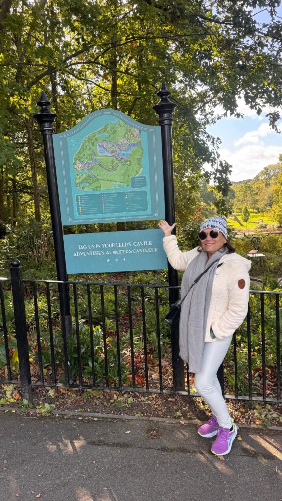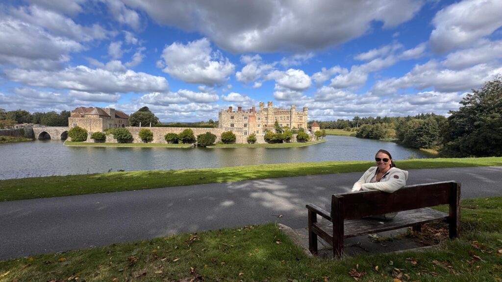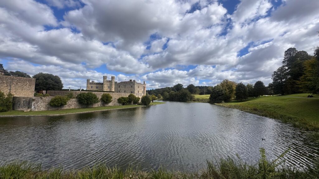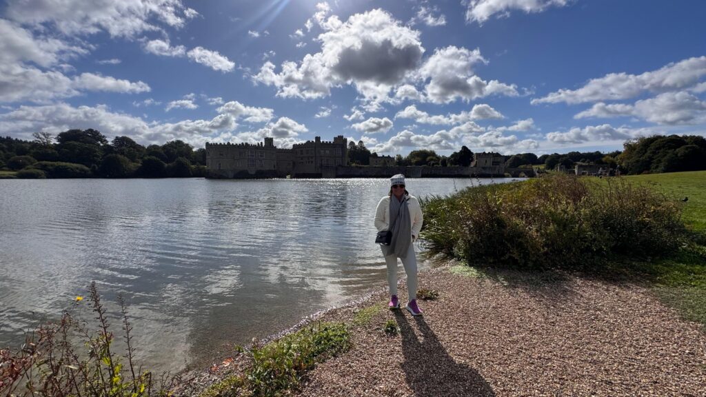 Em outro dia, escolhemos um bate e volta saindo de Londres com um ritmo mais suave e contemplativo para visitar o Castelo de Leeds, no interior do condado de Kent. Cercado por lagos tranquilos, jardins impecavelmente cuidados e uma paisagem que parece saída de um conto de fadas, o castelo começa a encantar muito antes mesmo da chegada. O caminho até lá já antecipa a sensação de estar se afastando da cidade e entrando em um cenário quase cinematográfico.