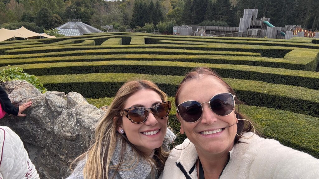 Os jardins são um capítulo à parte e complementam perfeitamente a visita. Passeamos sem pressa pelos caminhos à beira do lago, pelos jardins formais e pelas áreas verdes que convidam a desacelerar e simplesmente apreciar o momento. O complexo é amplo, extremamente bem-organizado e oferece experiências que vão além do castelo em si, como o famoso labirinto, estufas, pontes e inúmeros cantinhos perfeitos para fotos.