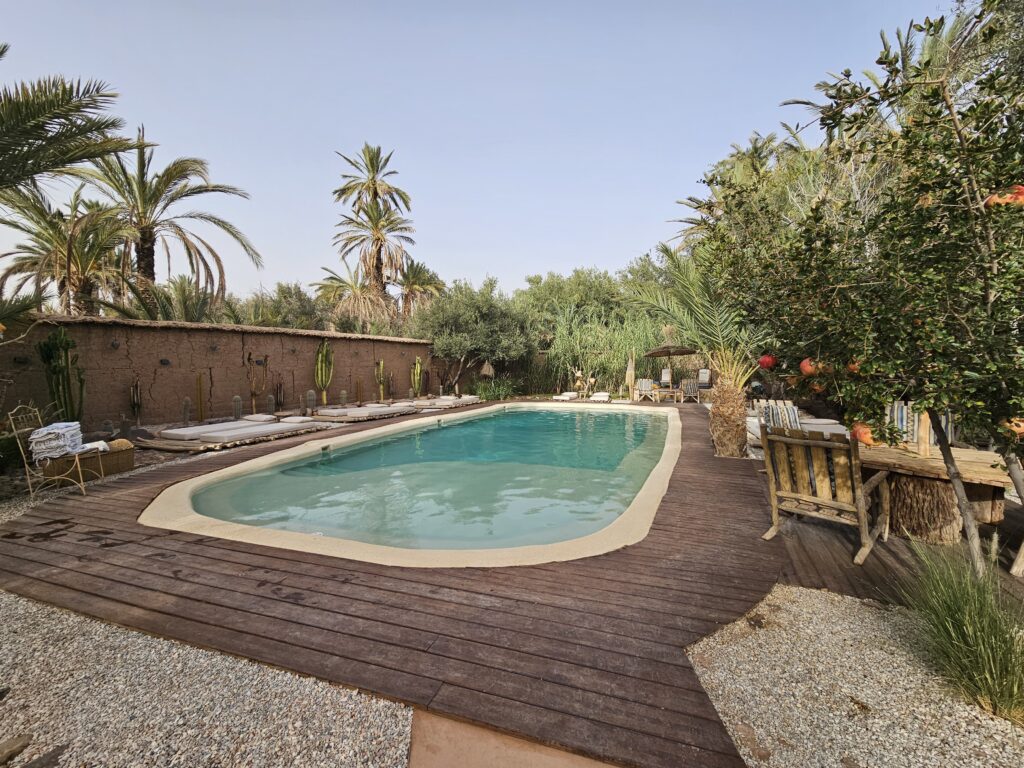 Esta noite, dormimos no L’ma Lodge, um lugar acolhedor e confortável, perfeito para descansar após um dia intenso de paisagens impressionantes e descobertas pelo interior do Marrocos.