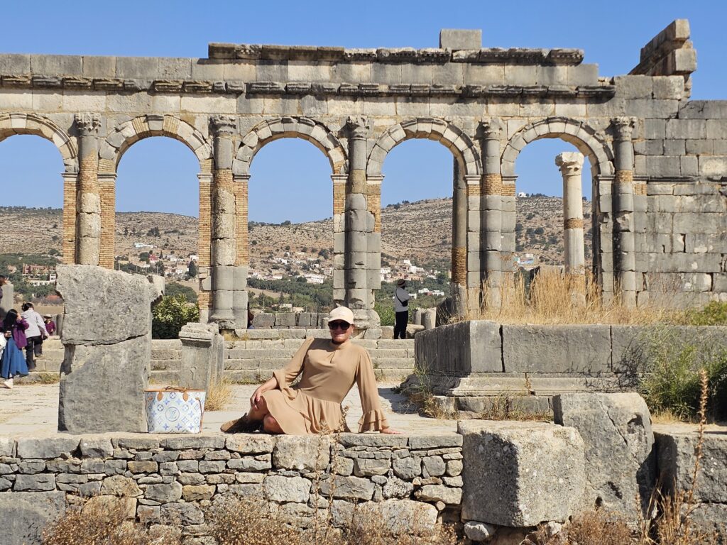 No caminho para Fez paramos nas ruínas romanas de Volubilis são um verdadeiro tesouro arqueológico um dos sítios romanos mais bem preservados do norte da África. Caminhar entre suas colunas, mosaicos e arcos é como fazer uma viagem no tempo. Essa antiga cidade marcou o limite sul do Império Romano e foi um importante centro administrativo na região.