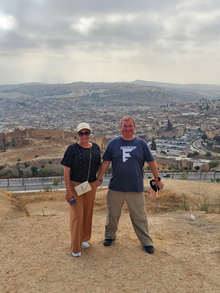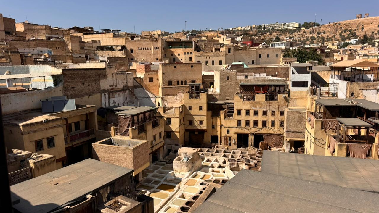 No fim da tarde, chegamos a Fez, onde a cidade nos recebeu envolta por uma luz dourada que tornava tudo ainda mais encantador. Fizemos uma breve visita panorâmica antes de seguir para o nosso hotel: o Riad My Fes, sem dúvida um dos melhores da viagem. Localizado dentro da Medina, o riad é um verdadeiro refúgio de charme e hospitalidade, com poucos quartos, decoração sofisticada e um atendimento impecável. Um lugar que combina o luxo discreto com a autenticidade marroquina perfeito para relaxar após um dia intenso de descobertas.