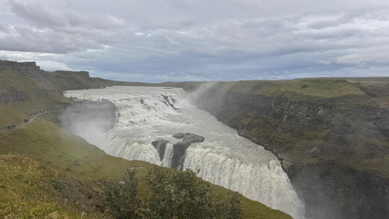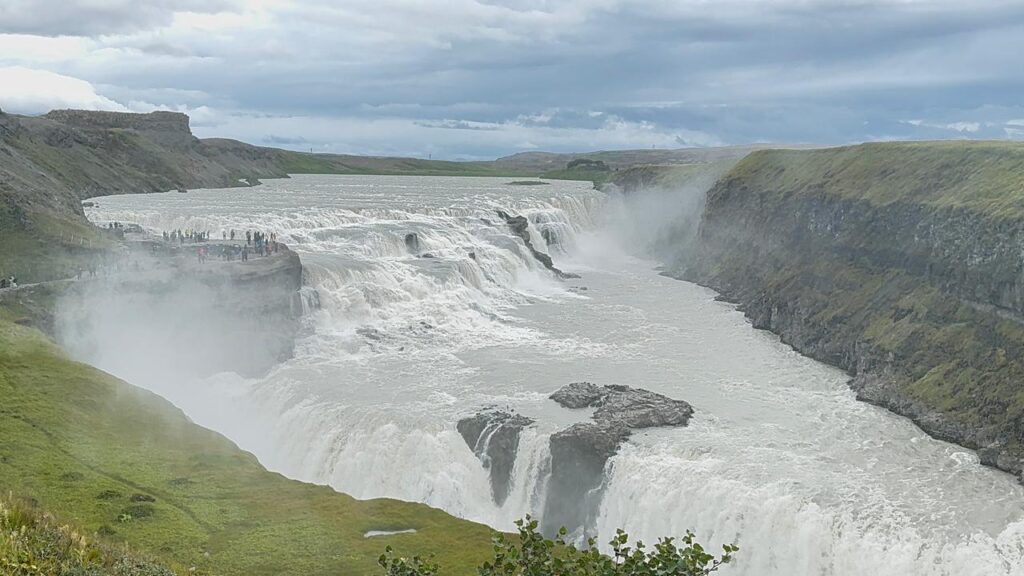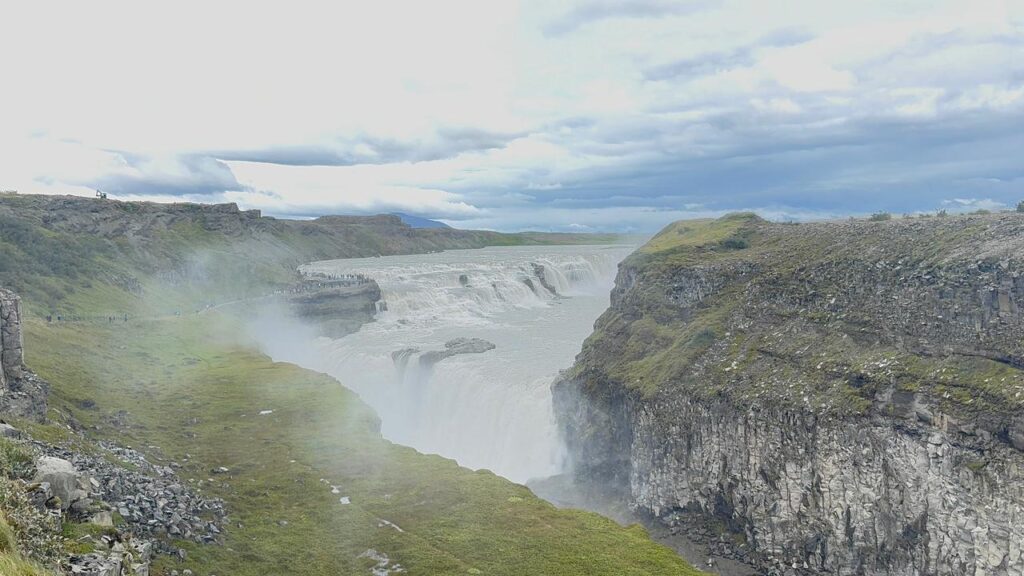 Gullfoss não é apenas a catarata mais conhecida da Islândia, mas também uma das mais chamativas e surpreendentes devido à sua dupla cascata de 31 metros de altura em total.