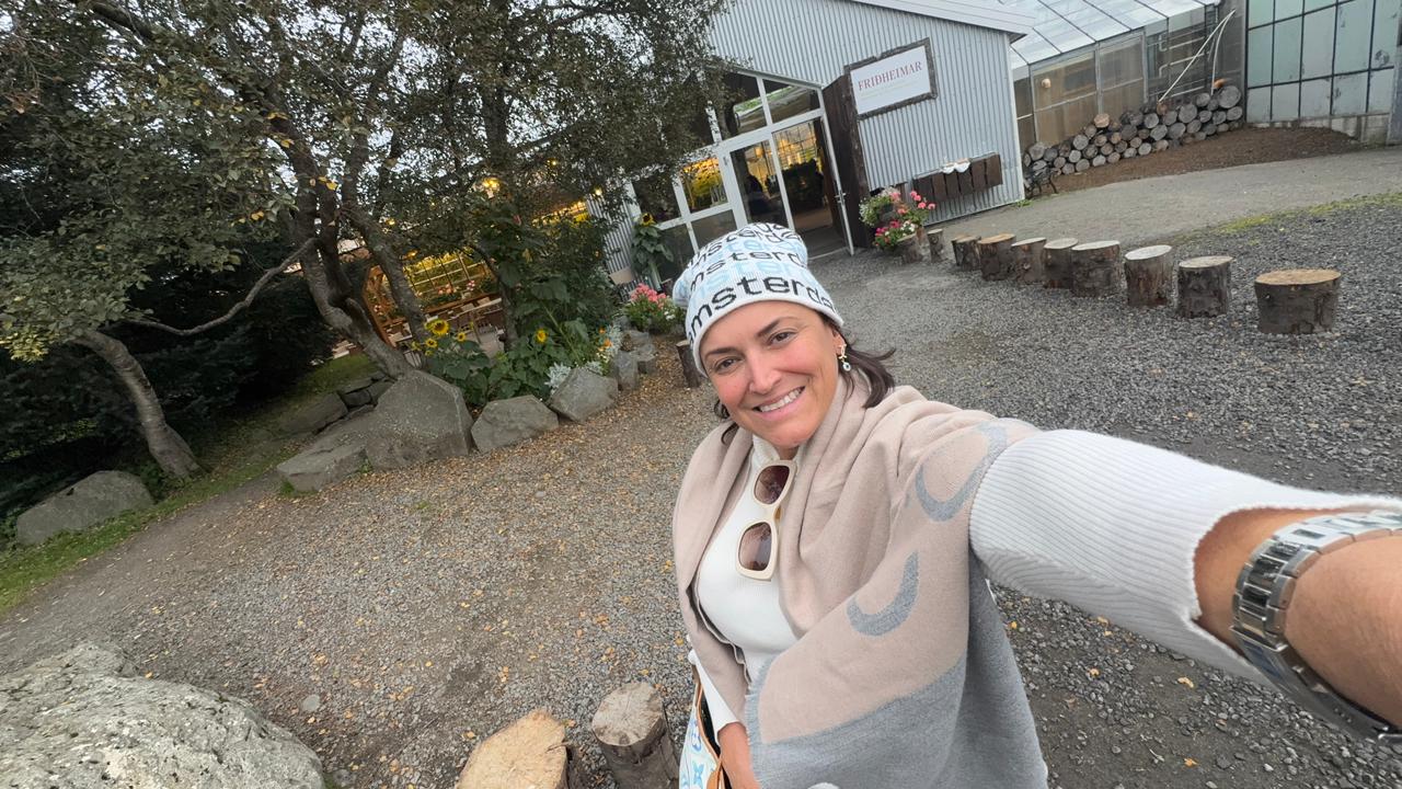 Para o almoço, fizemos uma pausa especial na fazenda Friðheimar, um lugar encantador e cheio de charme, famoso por seus pratos à base de tomate todos fresquíssimos e cultivados em estufas aquecidas pela energia geotérmica local. É uma experiência deliciosa e sustentável, perfeita para fechar o passeio com sabor e autenticidade islandesa.