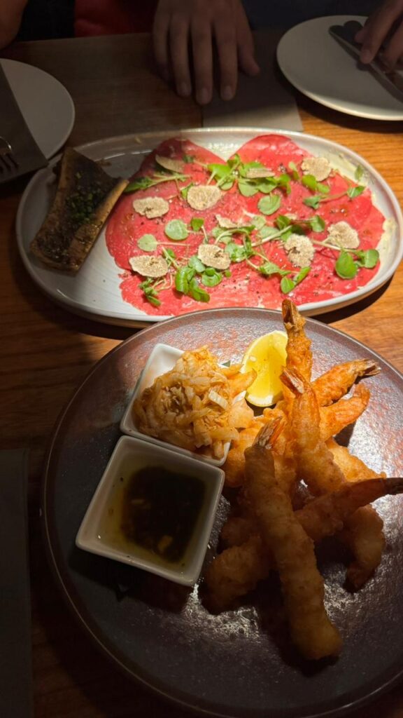 Chegamos na Islândia e ficamos hospedados no Radisson Blu, um hotel excelente e muito bem localizado, bem no centrinho de Reykjavík. Na primeira noite, jantamos no restaurante Matarkjallarinn, um restaurante que valoriza ingredientres locais com trecnicas modernas, oferecendo uma ótima comida islandesa contemporânea. O ambiente é elegante e acolhedor, com iluminação suave, paredes de pedra e um piano de cauda vienense de 1880, onde frequentemente há música ao vivo o que torna o jantar ainda mais especial.
