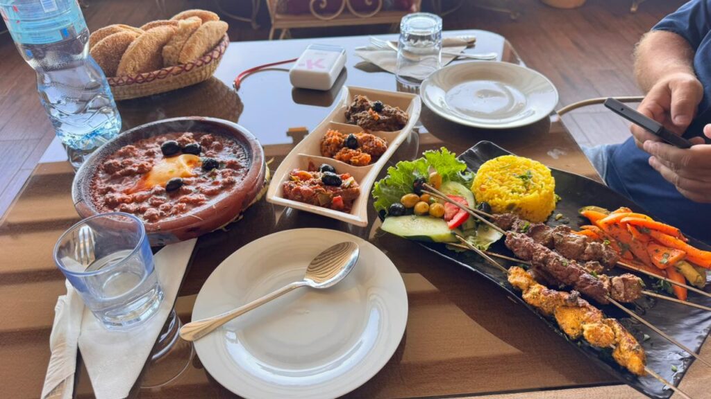 Fizemos uma pausa para o almoço no Dar Naji, um restaurante encantador que oferece uma autêntica experiência marroquina. O ambiente é típico, com decoração tradicional e atendimento acolhedor, e os pratos são saborosos e bem servidos sem dúvida, uma parada obrigatória para quem quer provar o melhor da culinária local.
