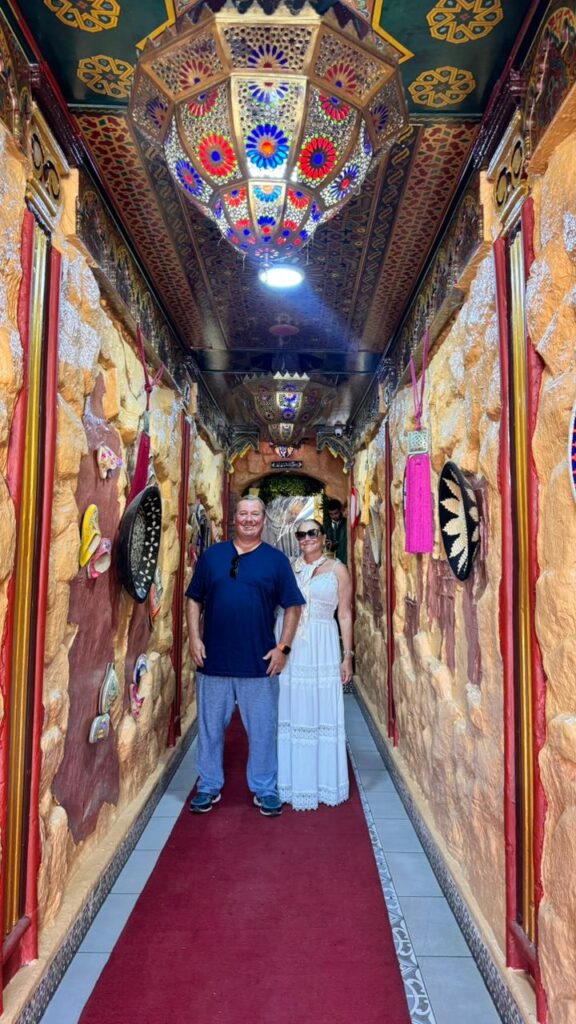 Ao final do dia, nos hospedamos no Euphoriad, um riad extremamente charmoso e bem localizado. A decoração combina elegância contemporânea com toques marroquinos, e o ambiente é tão acolhedor que parece uma verdadeira casa longe de casa o lugar ideal para relaxar após um dia repleto de descobertas.