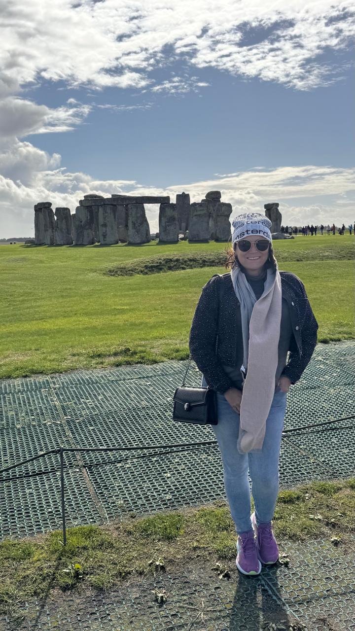 Nosso primeiro destino foi Stonehenge, um dos lugares mais enigmáticos e fascinantes da Inglaterra e confesso que a expectativa era grande. Ao chegar, a primeira visão das enormes pedras no meio daquele campo aberto é impactante. Mesmo à distância, Stonehenge impõe respeito. Caminhar ao redor do monumento, imaginando como aquelas pedras foram levadas até ali há milhares de anos e qual seria, de fato, o seu propósito, é uma experiência que mistura curiosidade, mistério e admiração. O silêncio do local, quebrado apenas pelo vento e pelos passos dos visitantes, cria uma atmosfera quase mística. O clima tipicamente britânico, com céu nublado e luz suave, acabou deixando tudo ainda mais dramático e fotogênico.