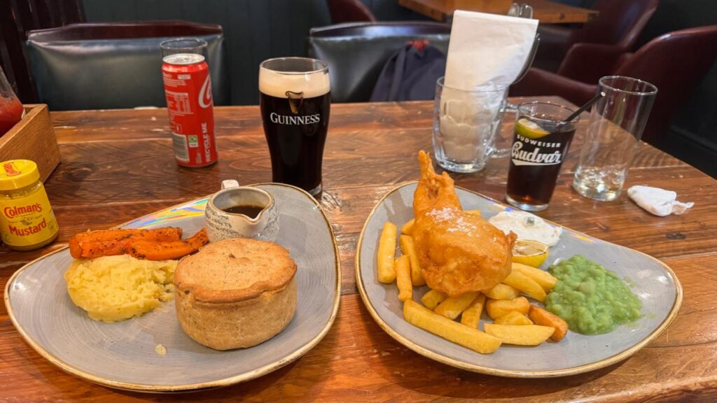 Após a visita ao castelo, vale a pena explorar a cidade de Windsor com calma. O centrinho é gracioso, repleto de lojinhas, cafés acolhedores e restaurantes ideais para um almoço tranquilo. Nós optamos por almoçar no The Corner House, um pub charmoso e aconchegante localizado a poucos passos do castelo, na rua atrás da entrada principal. Com clima tipicamente inglês, boa comida e ambiente informal, foi a pausa perfeita antes de seguir explorando a cidade e, depois, retornar a Londres com a sensação de ter conhecido um dos cenários mais emblemáticos da Inglaterra.