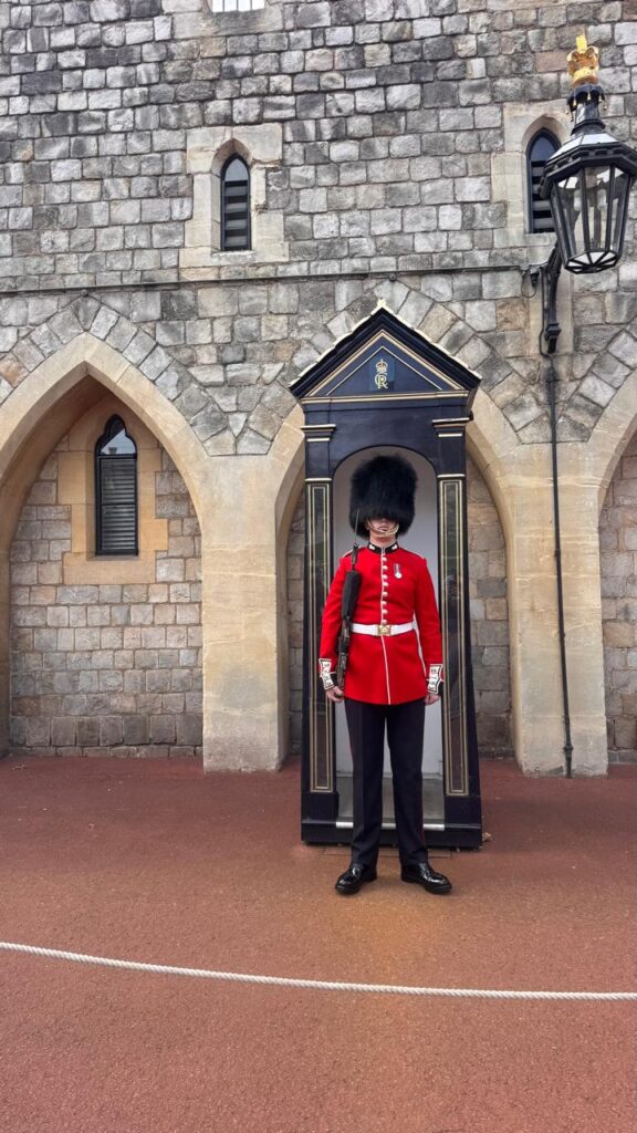 Windsor é um dos bate e volta mais fáceis de fazer a partir de Londres, inclusive de transporte público. A forma mais comum é de trem, saindo da estação London Paddington até Slough, com troca para um trem local até Windsor & Eton Central o trajeto leva cerca de 35 a 40 minutos no total. Outra opção é sair da London Waterloo direto para Windsor & Eton Riverside, em um percurso um pouco mais longo, de aproximadamente 55 minutos, mas sem necessidade de baldeação. Ambas as estações ficam a poucos minutos de caminhada do Castelo de Windsor. No nosso caso, porém, optamos por ir de carro com motorista contratado, o que tornou a experiência muito mais confortável e flexível.